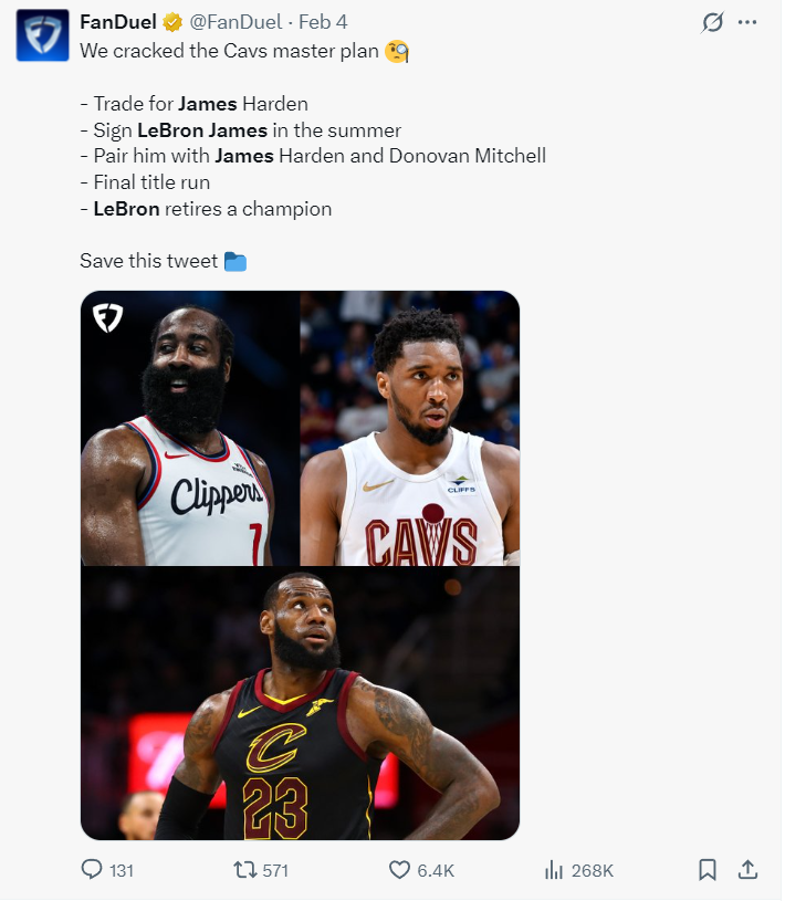 根据美媒FAnDuel的报道,在骑士队交易得到哈登后,哈登与米切尔两人有意在今夏说服勒布朗签约骑士重返克利夫兰,因为此前Shams透露勒布朗在湖人进入最后一个赛季。这场比赛感觉勒布朗的竞技状态的确很混乱,难道他真的要走了?