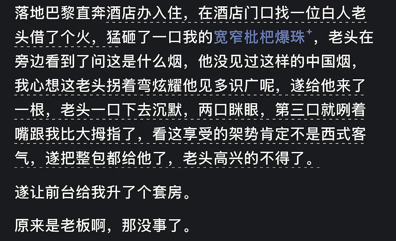 一次在美国转灰狗的间隙,便利店门口吸烟点抽烟:被个小黑要了一支。跟大部分小黑不同,没什么口音,谈吐也很礼貌。